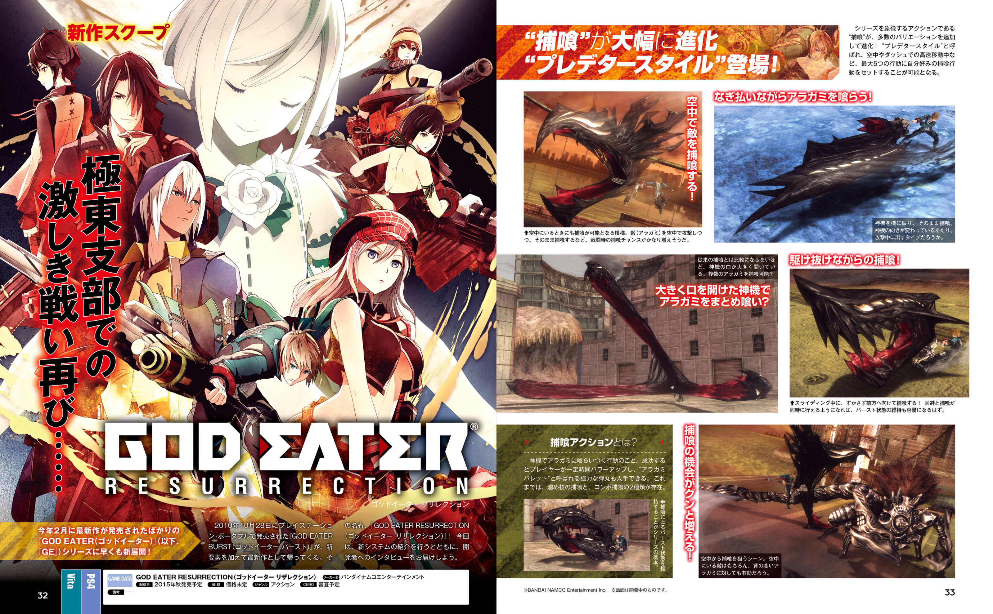 Bandai Namco Entertainment has announced a remake of the PSP game God Eater Burst which will be titled God Eater Resurrection for both Playstation 4 and PlayStation Vita. The game will be released in Japanese on October 29th, 2015.